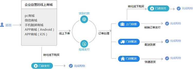 新零售电商方案整合移动、线上及门店的全渠道场景,是实体店的O2O网络化改造,让用户通过多个终端能够订购、体验、消费各种各样生活的服务。对于直营店或专柜,所有 的店铺有统一的信息系统、统一的数据、统一的管理和服务标准,线上、手机端、实体店完全一体化的服务,不论在哪一端购买,都可以在实体店实现体 验、退换货, 用户可以线上线下自由流动和切换。对于加盟店,总部将订单派到距消费者最近的店铺,由店铺发货,网上订单也归入发货店的业绩,资金实时结算或按周期结 款,店主也可以选择用网上订单货款抵消下一批进货款 把线上的销售利润额外分给门店,线上只能服务于线下。